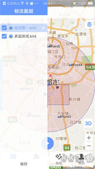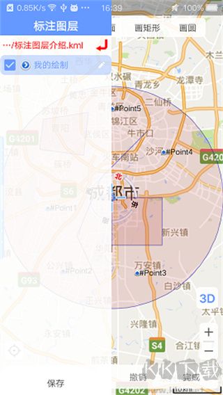 2、抽屉底部设有保存按钮,点击它可保存当前选中的 kml 对象,便于后续查看使用。