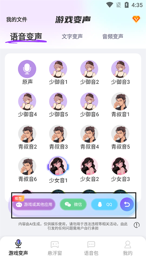 2、用丰富多变的声音让你的qq语音聊天更有意思。