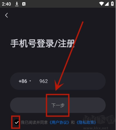 5、填入号码并选中服务条款,点选下一步即可开启后续情节。