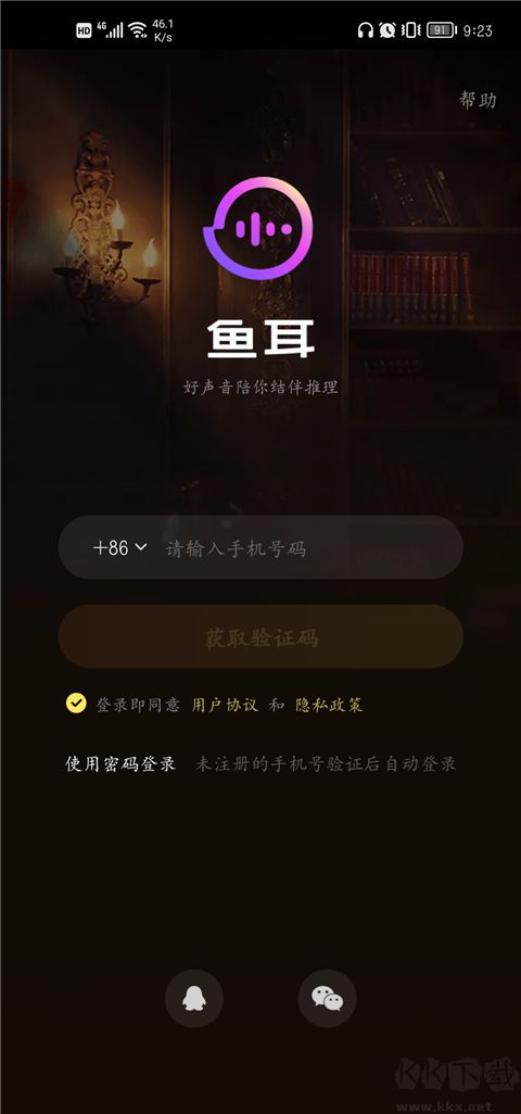 1、通过本站下载安装并启动鱼耳App,可选择微信或QQ登录,无需额外注册。
