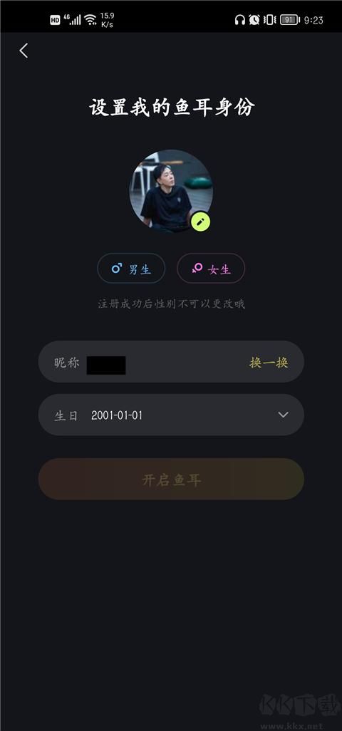 2、接下来可设置个人身份,包括性别、昵称、生日等基本信息。