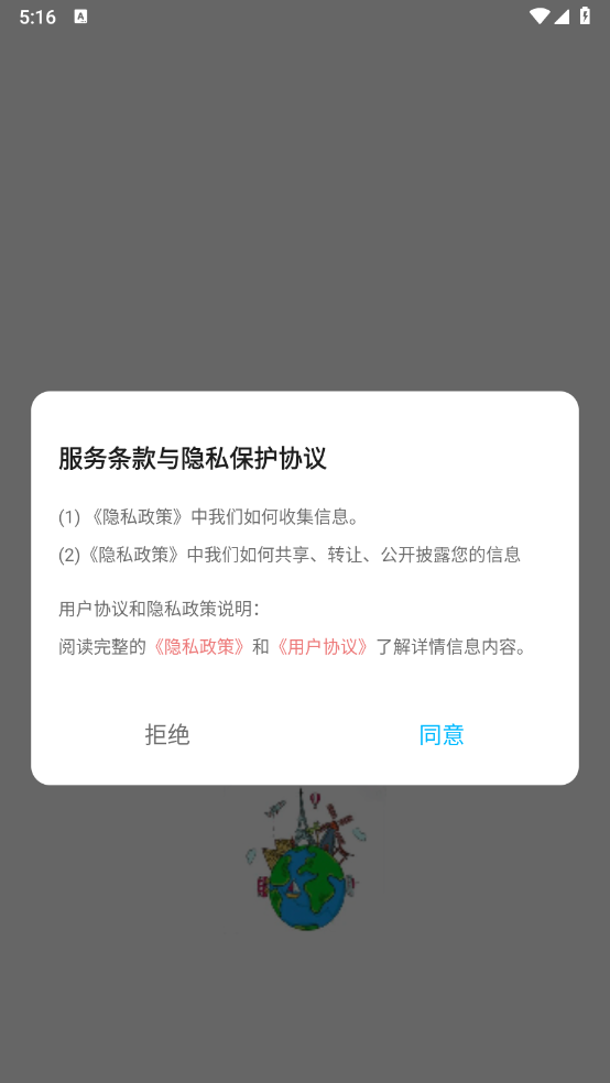 1、下载安装看世界旅游助手app,同意相关的政策与协议。
