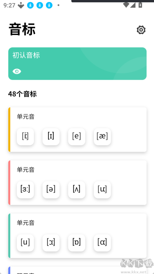 1、收录48个英语音标,每个均提供标准发音音频与口型图示;