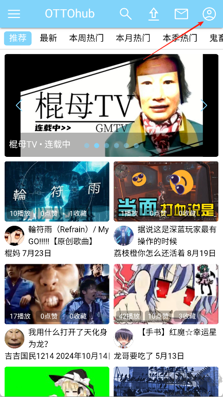 1、启动ottOHub应用,轻触右上角头像标识。