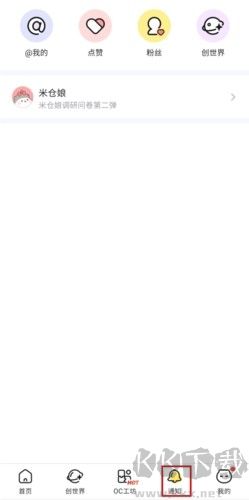 4、通知界面:使用者在米仓捏脸中的所有的消息都可以在这里获取;