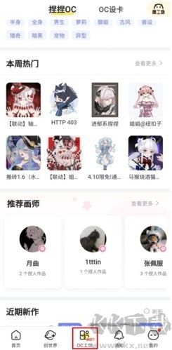 3、OC工坊界面:这边是关于自设和OC的模板,使用者可以在这里挑选,还有不少优秀的画师;