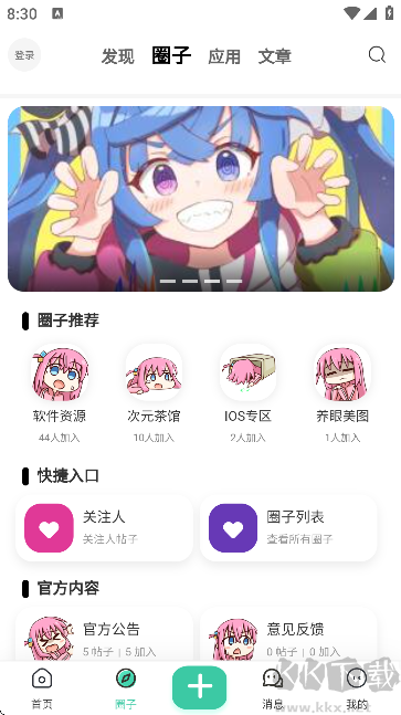 2、在主界面中,可查看当前受欢迎的精选小组及主要功能导航。