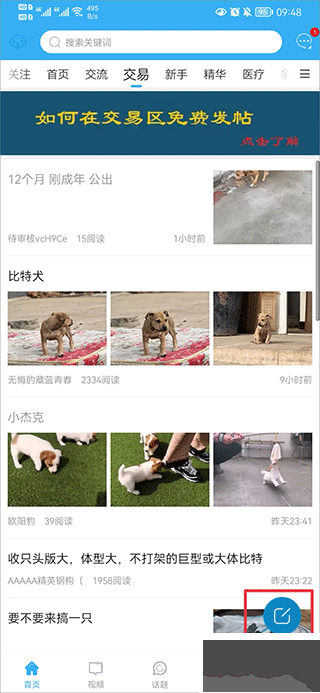 3、卖家使用者则能够点击右下角发布交易帖子。