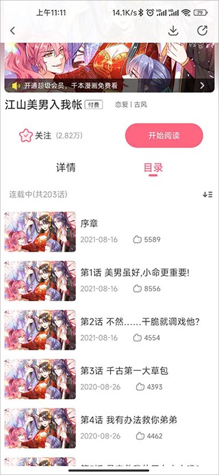 5、点击后打开漫画详情界面,可以先看看漫画的简介,感兴趣即可点击开始阅读。