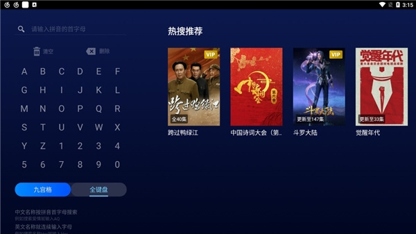 5、或者返回主界面,点击最左边的搜索图标,输入cctv,即可显示相关cctv央视频道。