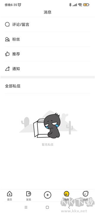 4、消息界面可以查看评论留言,新增粉丝和通知等内容;