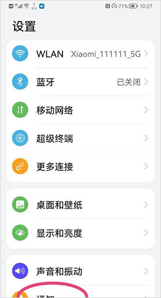 3、找到"通知"并点开。