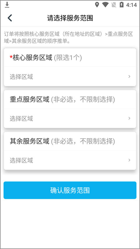 2、选择服务区域。