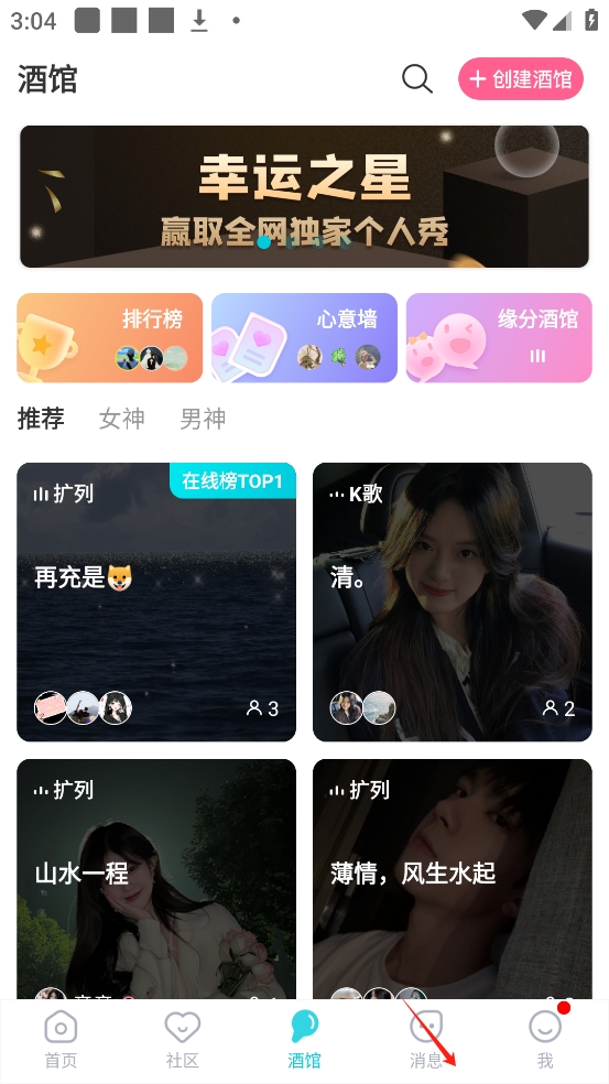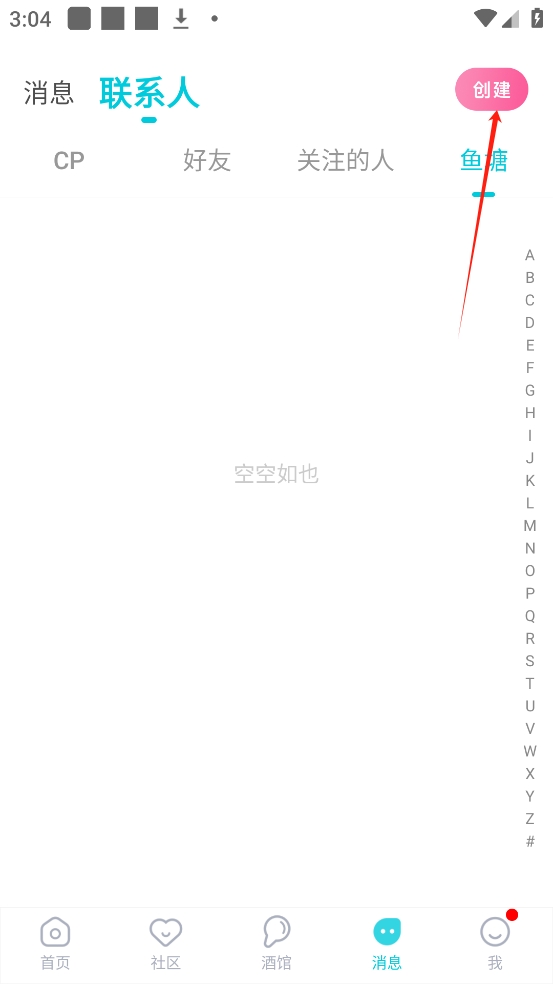 2、选择联系人板块的鱼塘选项,点击右上角创建按钮