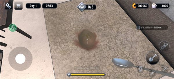 4、同时使用道具开始挖掘,挖掘下面可能有物品。