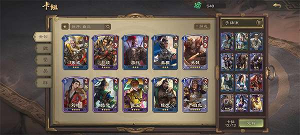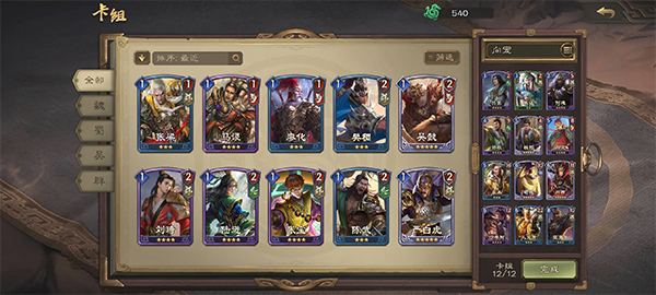 有向宠和孙权的情况下才可以玩,没有孙权的话不要玩,太容易卡手了。很简单的卡组,1~3费哪里亮了点那里,有牌就下,下同一个战场就可以。在四费的时候如果还没有出向宠就下孙权制衡,争取在五费下向宠,六费再看战场情况补充一个大哥。其他尽量全带大哥牌,如果大哥不够多的话,可以带一个法正复制对面的。