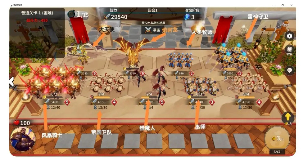 (1)完成熔岩龙任务,或入场人族牧师(放在熔岩龙右边)触发联合军团效果增加数量。