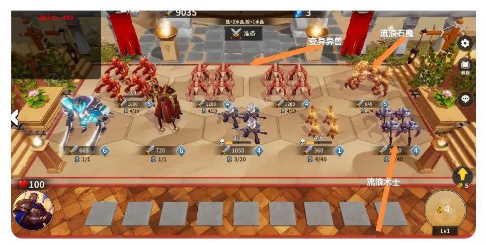 (除了恶魔勇士,流浪射手不合金,其他全金。死亡骑士,大巫妖,石魔优先合金。站位保护流浪术士)